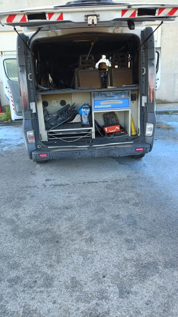 Corto circuito nel furgone della stradale della Polizia Municipale di via Ossidiana.