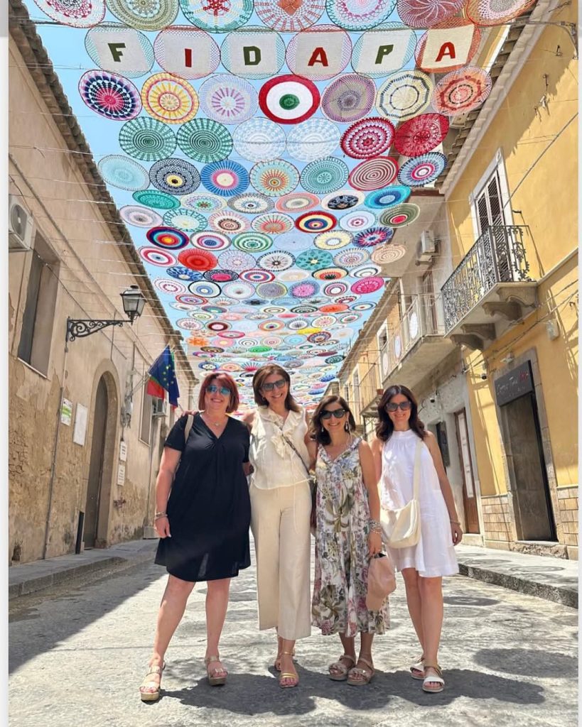 Una porzione di cielo vestita di colori, di volute , di arte. È il cielo della via IV Novembre di Niscemi abbellito di centrini realizzati all'uncinetto. Un'idea nuova quella della Fidapa presieduta dall'avv. Lucia Spata che coniuga i concetti di arte, tradizioni siciliane, bellezza e allegria.
