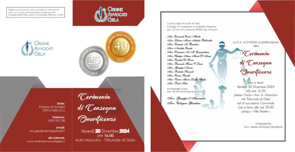 Presieduta dal presidente dell'ordine degli Avvocati di Gela, Maria Giordano, la cerimonia ha alternato momenti di emozione, intensità e alta dialettica, tipica della categoria che, del logo, ha fatto il suo lavoro sulla scorta dei progenitori romani, a momenti di allegria e condivisione. Perché superare gli ostacoli professionali, le sfide ed assistere i cittadini che invocano la giustizia per decenni, non è da tutti. E di questo è conscia la categoria che saluta con favore questo momento di festa che ogni anno coincide con le festività natalizie.