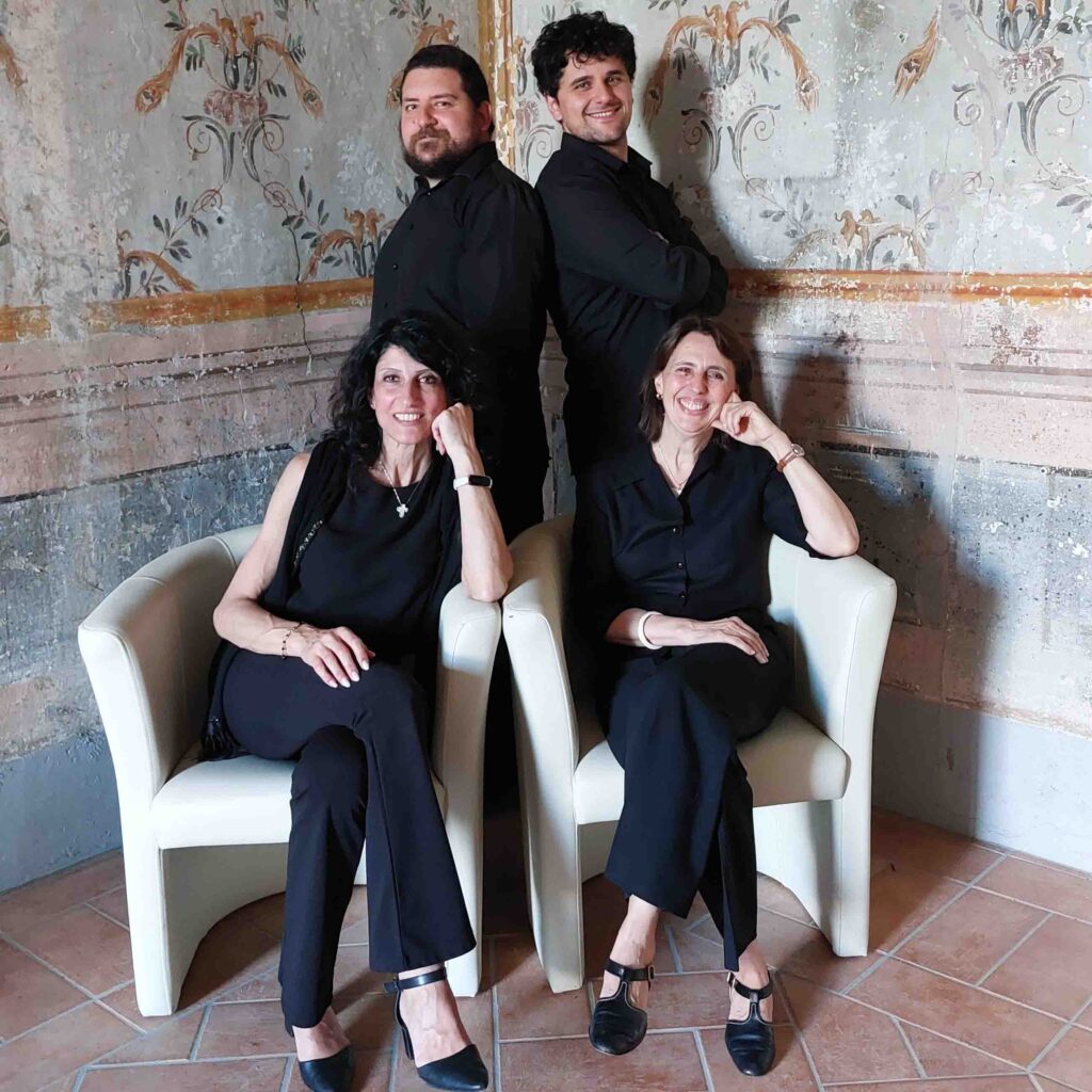 L’Ensemble Extravocalia - Carla Ferrari, soprano; Isabella Candeloro, mezzosoprano; Leonardo Malara, tenore; Marzio Montebello, basso - nasce con l’intento di diffondere la musica vocale antica e barocca, eseguita sia a cappella che accompagnata da strumenti, secondo un’accurata ricerca filologica. Il repertorio in particolare è quello madrigalistico e quello sacro in uso all’epoca presso le basiliche e cappelle papali. I suoi componenti sono, infatti, specializzati in questo repertorio; fanno, o hanno lungamente fatto parte, dei cori delle Cappelle Vaticane e di istituzioni come il Pontificio Istituto di Musica Sacra. L’Ensembe Extravocalia vede riuniti professionisti di varia provenienza artistica che si alternano flessibilmente a seconda delle esecuzioni - anche con l’aggiunta di strumenti antichi - e che svolgono abitualmente la loro attività professionale, pure in veste solistica, in importanti festival e rassegne musicali sia in Italia sia all’estero.