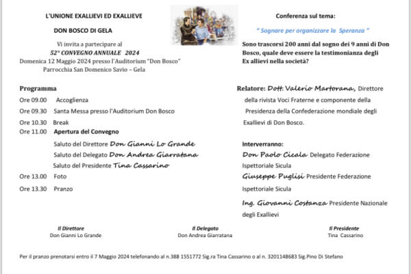 Il 52º Convegno Annuale degli Ex allievi si terrà a Gela