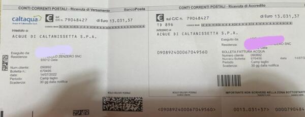 Bolletta idrica da 13 mila euro