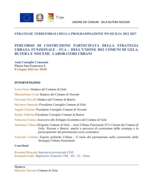 Al Comune si presenta il Fua, Unione dei comuni di Gela, Butera, Niscemi