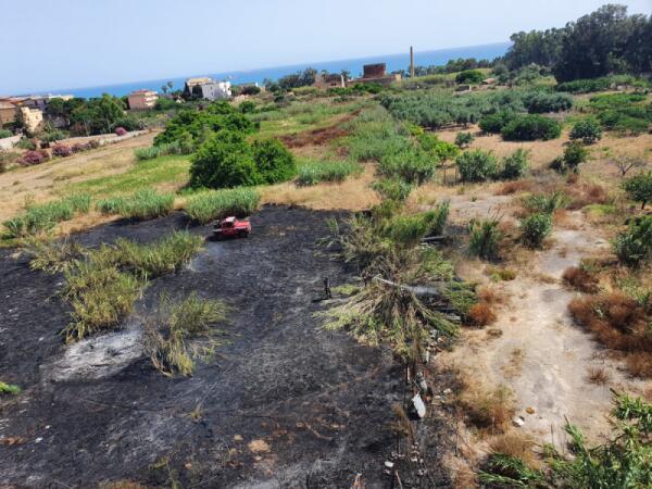A fuoco le sterpaglie vicino al Centro oli