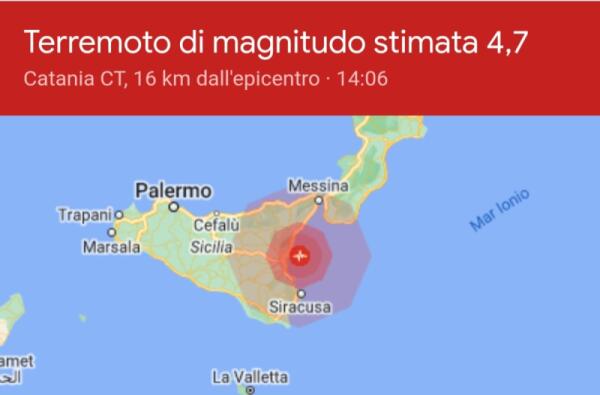 Terremoto con epicentro l’area etnea, avvertito a Gela