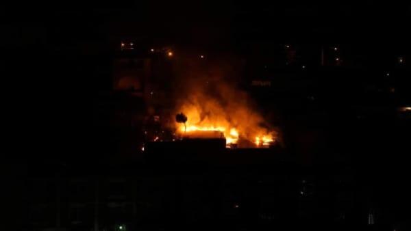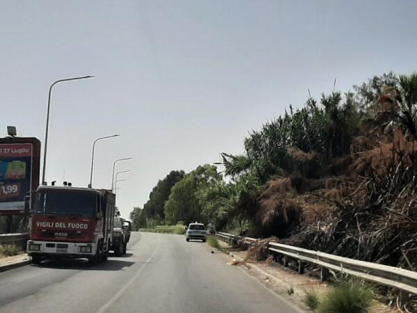 Fiamme sul ciglio della strada a Borgo Manfria