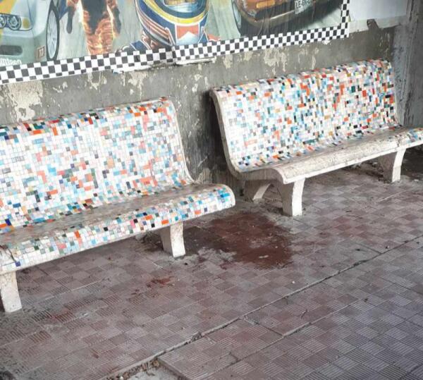 Giovane pulisce le panche di piazza don Bosco