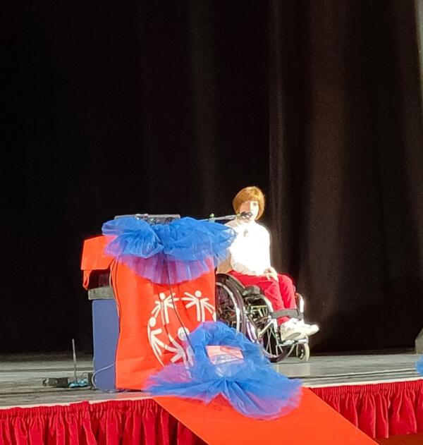 L’atleta di Special olympics Valentina Costa riceve i complimenti del presidente Moratti