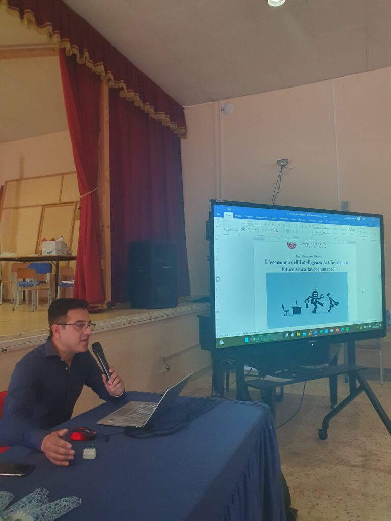 Con la lezione di stamattina Alessandro Morselli, docente di Economia dello Sviluppo, Università di Roma Sapienza, dal titolo “L’economia dell’Intelligenza Artificiale: un futuro senza lavoro umano?”, anche quest’anno, volge al termine, e con successo, il ciclo di lezioni del PCTO denominato “Diritto, Economia e Medicina nell’era dell’Intelligenza Artificiale”, per i circa 220 studenti partecipanti del Liceo Classico Eschilo di Gela, al fine di proiettare gli studenti nel mondo universitario e in quello del lavoro, in uno scenario contrassegnato dall’Intelligenza Artificiale.