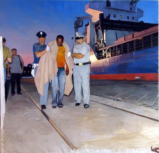 Al tempo stesso, la mostra indaga il volto e la figura umana nel Novecento, sempre più spesso espressione del male e della sofferenza, riflesso di un' “umanità dolente”. I volti e i corpi, privi di tratti fisionomici definiti, sono sfigurati da smorfie o urla e recano impresso il marchio di un dolore acuto e l’assenza di speranza dell'uomo contemporaneo. Nella sezione del contemporaneo, cui è inserito il pittore gelese, sono presenti le opere degli artisti della corrente della cosiddetta Nuova Figurazione Italiana, nati tra gli anni Sessanta e gli Ottanta, dallo stile post-espressionista oppure iper-realista, dalla linea dolce oppure più graffiante, dal tono pittorico evocativo e simbolico oppure marcatamente crudo.