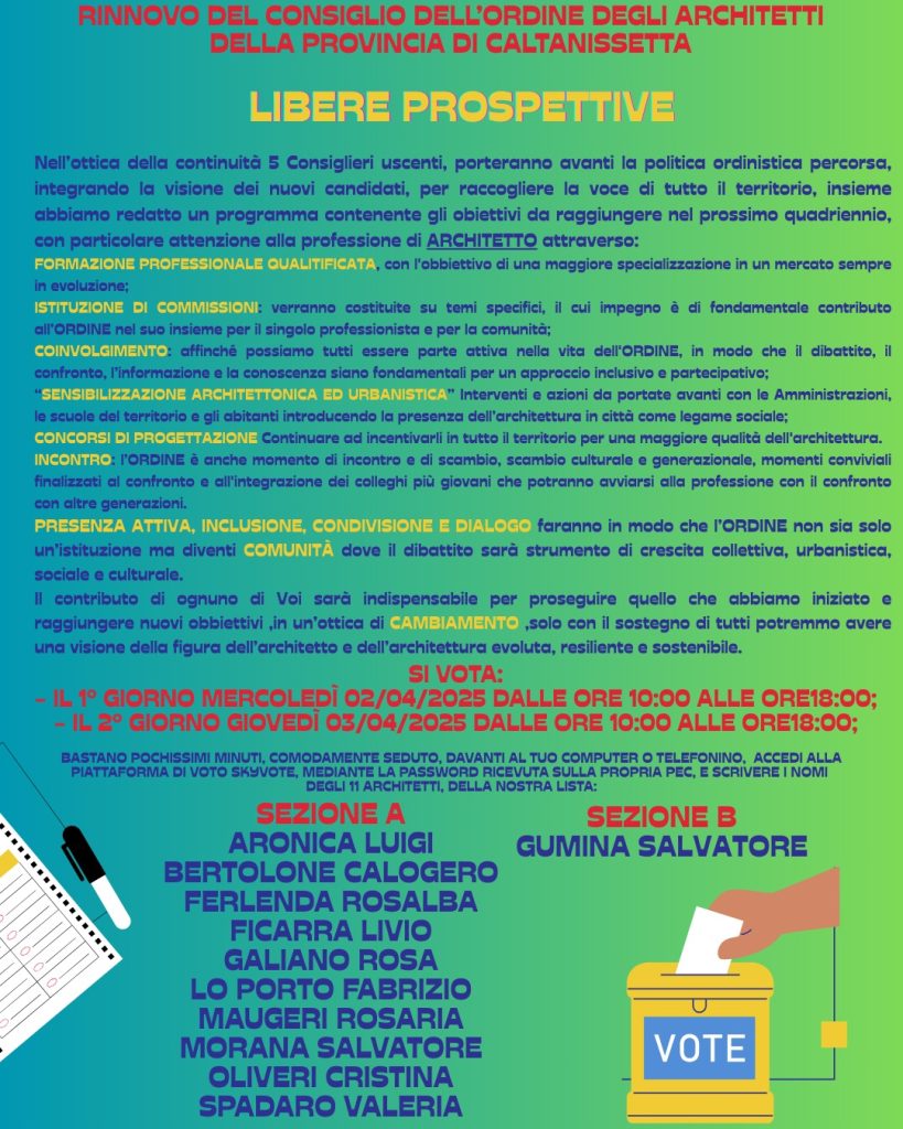 Moderni, dinamici, adeguati alle nuove istanze dei territori. Ecco i programmi di intervento degli architetti delle due liste della provincia di Caltanissetta per il rinnovo dell'ordine degli architetti che si rinnova fra oggi e domani.