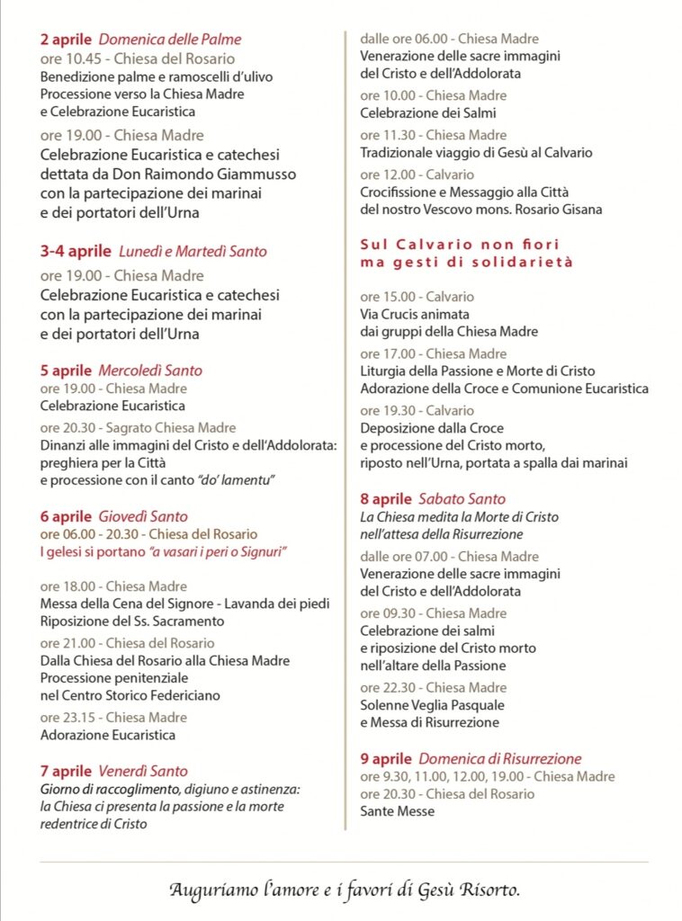 E' stato diffuso il programma della Settimana Santa della chiesa Madre di Gela redatto dal parroco Don Vincenzo Cultraro.
