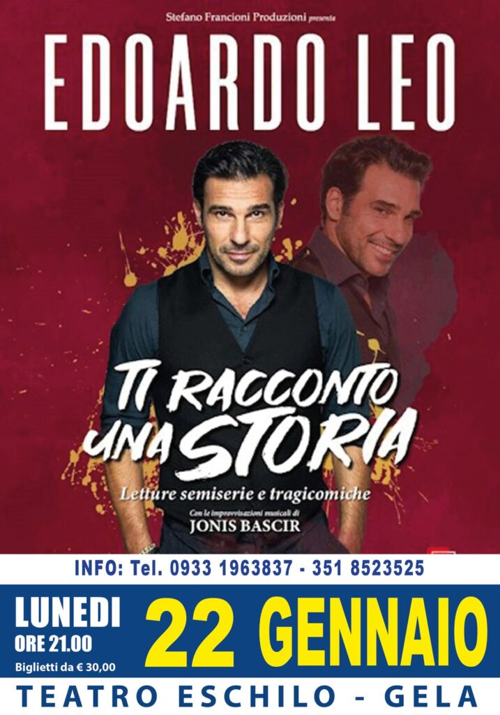 Edoardo Leo in ‘Ti Racconto una Storia’: al Teatro Eschilo un viaggio tragicomico tra parole e musica, lunedì 22 gennaio, sarà protagonista al Teatro Eschilo di Gela con “Edoardo Leo in Ti Racconto una Storia” – letture semiserie e tragicomiche.