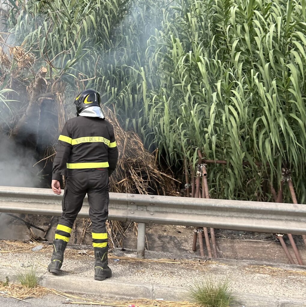Sul posto sono intervenute le squadre dei Vigili del fuoco che hanno domato l’incendio. Adesso è alta l’attenzione per impedire che il vento e le alte temperature possano far ripartire il fuoco, che troverebbe campo libero tra gli arbusti.