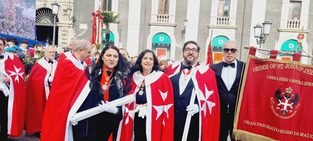 Insieme alle Dame e ai Cavalieri del Priorato di Sicilia, sotto la guida del Priore Alice Infantino, hanno preso parte alla solenne processione lungo la via Etnea, portando con sé il simbolico dono della cera: candele votive offerte in segno di devozione alla Patrona Catanese, fino al Duomo di Catania.