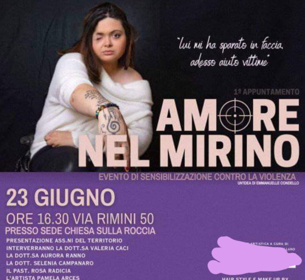 Questa terribile esperienza l' ha indotta a prendere in mano la sua vita e far del bene per fare riflettere le donne e sensibilizzare l’opinione pubblica sul dramma vissuto da tante donne all’interno di una crisi sociale. Gloria Hoffman Boemia, e' sopravvissuta a un tentato di femminicidio. I fatti risalgono al 2014, quando a Sacrofano, in provincia di Roma, proprio nei giorni che precedono la data del 25 novembre, il suo compagno, pregiudicato e spacciatore, le ha sparato. Gloria, ha perso un occhio e l'udito da un orecchio; si muove su una sedia a rotelle; presenta parte del cranio ancora deformata dal colpo.