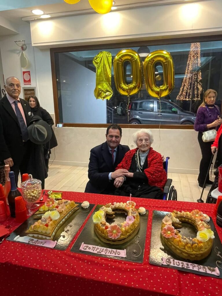 Una torta col numero 100 e tanta allegria per un'inno alla vita in carne e ossa come incarna Giuseppina.