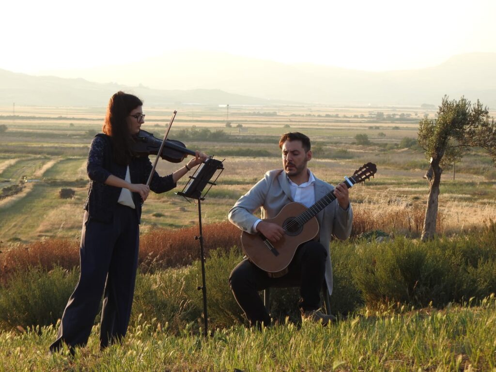 “Lasciate che le note della natura possano accompagnare le melodie dei nostri artisti" – Questo l’invito degli operatori della riserva durante la presentazione dei musicisti. Violino e chitarra magistralmente si sono intrecciati ai versi e canti degli uccelli: gruccioni, beccamoschini, strillozzi, rondoni, occhioni e cappellacce hanno partecipato come un’orchestra di armonie che rintoccava un inno alla natura.