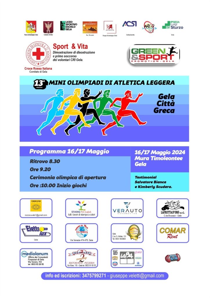 Tornano le Mini Olimpiadi di atletica leggera: appuntamento i prossimi 16 e 17 Maggio alle Mura Timoleontee. L’iniziativa è promossa dall’associazione Green&Sport presieduta da Giuseppe Veletti, i due testimonial saranno Salvatore Bianca e Kimberly Scudera.