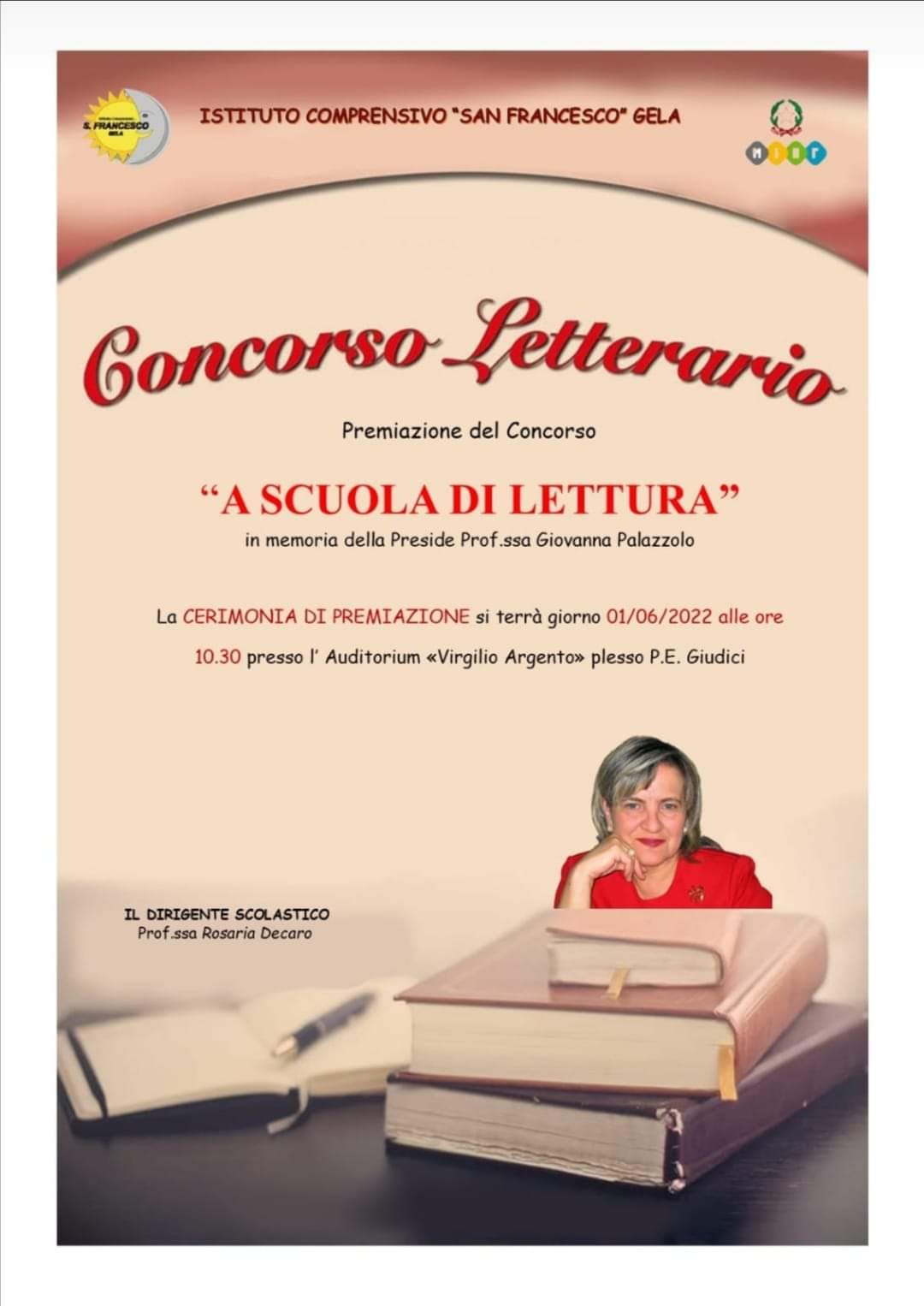 Un concorso letterario, denominato "A Scuola di Lettura", per ricordare la prof.ssa Giovanna Palazzolo, l'ex preside dell'istituto comprensivo statale "San Francesco" a indirizzo musicale, scomparsa meno di un anno fa per un male incurabile.