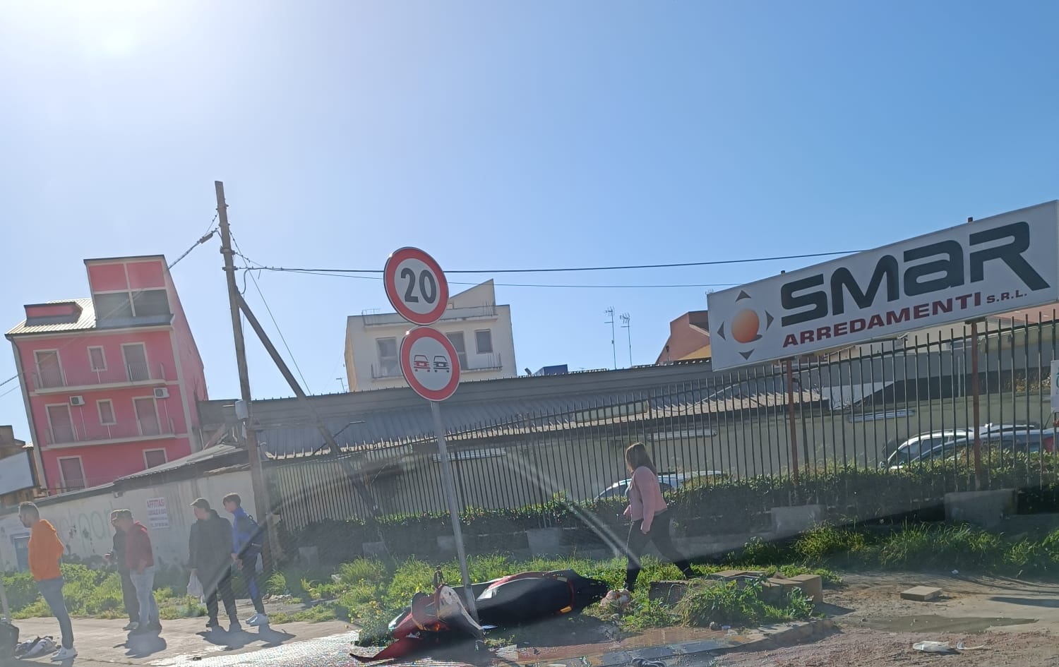 Incidente autonomo in via Butera. Un motociclo su cui viaggiavano due ragazzi è finito contro un palo dell' energia elettrica come si vede dalla foto. Tanta paura ma solo qualche lieve ferita lacero- contusa curata dai medici