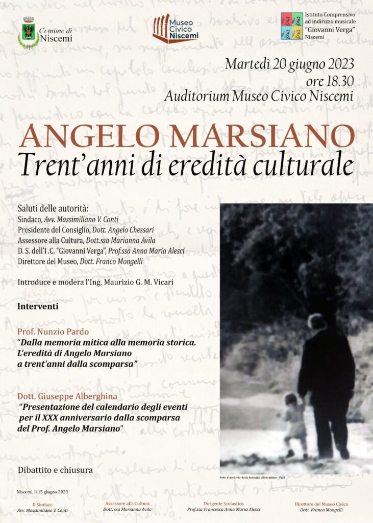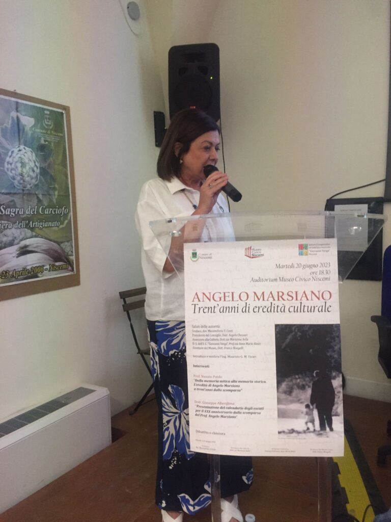 Niscemi - Il 1926 ha dato tanto a Niscemi. Ha dato figure di spicco per la cultura: Mario Gori, Giuseppe Blanco, Angelo Marsiano. Ha dato tanto ma la vita li ha visti in terra per un tempo limitato. Sono morti rispettivamente a 44, 64 e 67 anni. Ma hanno seminato un terreno di cultura e ricordi sempre vivo. Il Museo civico ed il Comune, a trent'anni dalla morte, hanno ricordato Angelo Marsiano con una conferenza tenuta dal Prof. Nunzio Pardo. In apertura i saluti istituzionali del sindaco Conti, dell'assessore alla cultura Marianna Avila, del presidente del consiglio comunale Chessari. Il direttore del Museo Franco Mongelli ha fatto gli onori di casa.