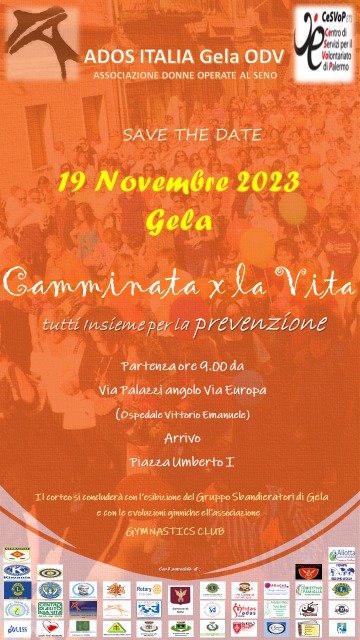 Lo ha fatto organizzando di una passeggiata per inneggiare alla vita, grazie alla prevenzione. Ha coinvolto quante piu' associazioni, a cominciare dall' Ados Italia, i clubs services ed aziende. Tutti in marcia per tenere accesi i fari. Il Rotary club di Gela presieduto da Silvio Scichilone, il Lions Gela Host presieduto da Giovanni Iozza, Lions Club del Golfo di Gela con Alessandro Guarnera, il Lions Club di Gela - Ambiente Territorio e Cultura con