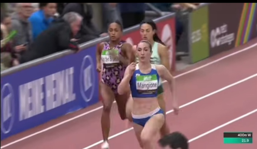 Dopo 29 anni il record italiano indoor dei 400 femminili è stato superato. È Alice Mangione al meeting di Karlsruhe, in Germania: ha volato in 51.75 superando nettamente il primato di 52.17 stabilito da Virna De Angeli il 10 marzo 1996 a Stoccolma.