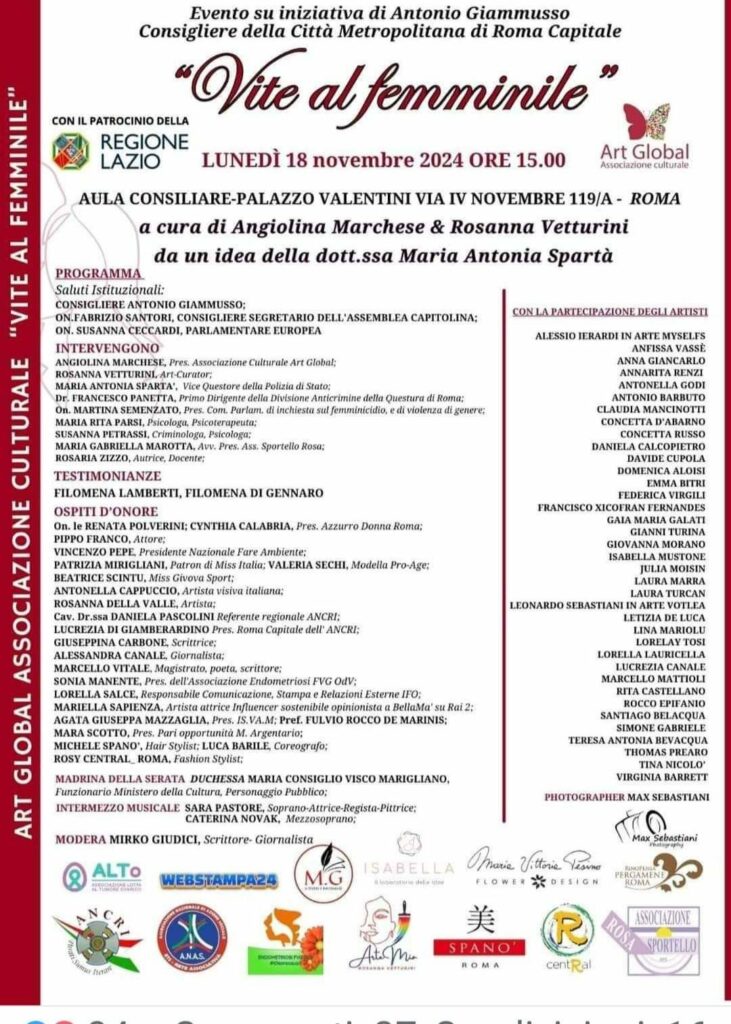 “Vite al Femminile” è stato realizzato grazie all'organizzazione di Angiolina Marchese, Presidente dell’Associazione Culturale “Art Global”, e dell’Art Curator Rosanna Vetturini, da un’idea del Vice Questore di Roma Maria Antonia Spartà: che s’è svolta presso la Sala Consiliare di Palazzo Valentini.