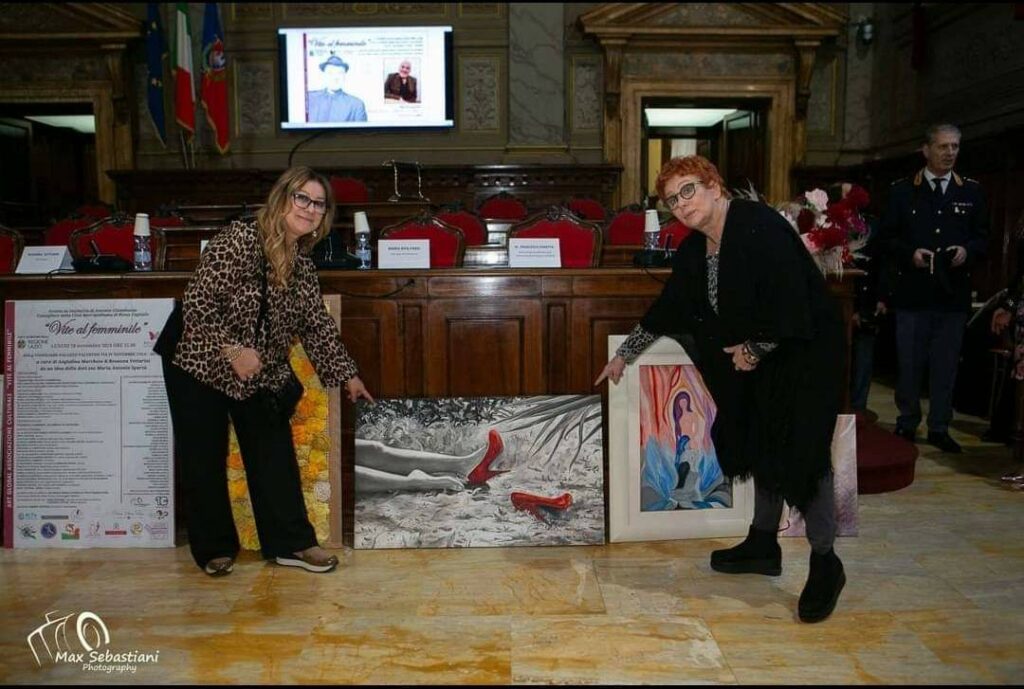 Roma - C'era anche un'artista di Gela, Rita Castellano, la sera del 18 novembre a Palazzo Valentini di Città metropolitana di Roma Capitale. insieme a Angelo Pizzigallo , Fabrizio Santori Antonio Giammusso per l’iniziativa ‘Vite al Femminile’. Tanti ospiti tante autorità, e la testimonianza toccante di due super Donne che hanno reagito a questo abuso Filomena Di Gennaro Filomena Lamberti.