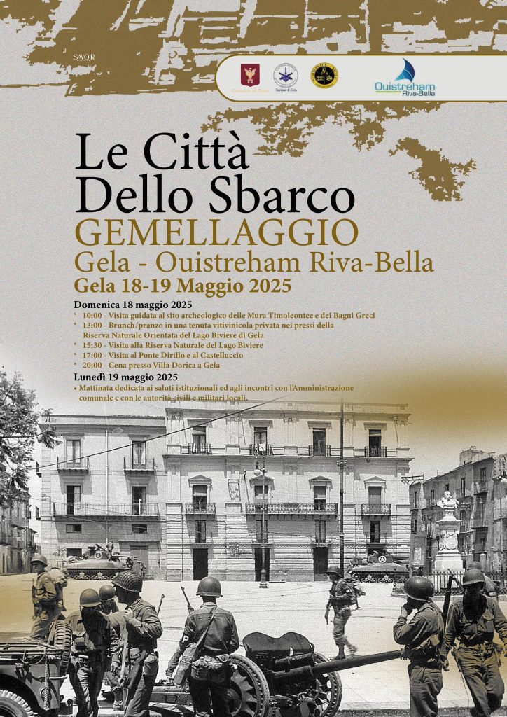 Il Comune di Gela, in collaborazione con le autorità francesi di Ouistreham Riva-Bella, ha promosso l’evento “Le Città dello Sbarco – Gemellaggio Gela - Ouistreham Riva-Bella”, in programma il 18 e 19 maggio 2025.