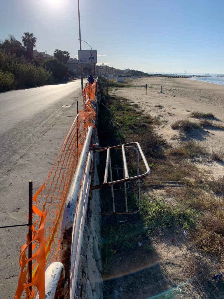 Siamo al lungomare segnalano Salvatore Nastasi e Giuseppe Migliore. Ha ceduto una transenna. E' stata coperta con la rete. E basta.