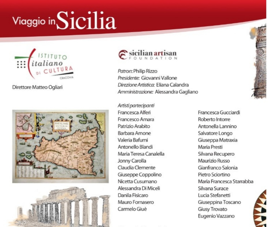 L’Istituto Italiano di Cultura di Cracovia da lunedì 12 a lunedì 30 giugno organizzerà una serie di eventi interamente dedicati alla promozione di artisti della Sicilia organizzata da Sicilian Artisan Foundation con esposizione delle opere nelle varie sale espositive.