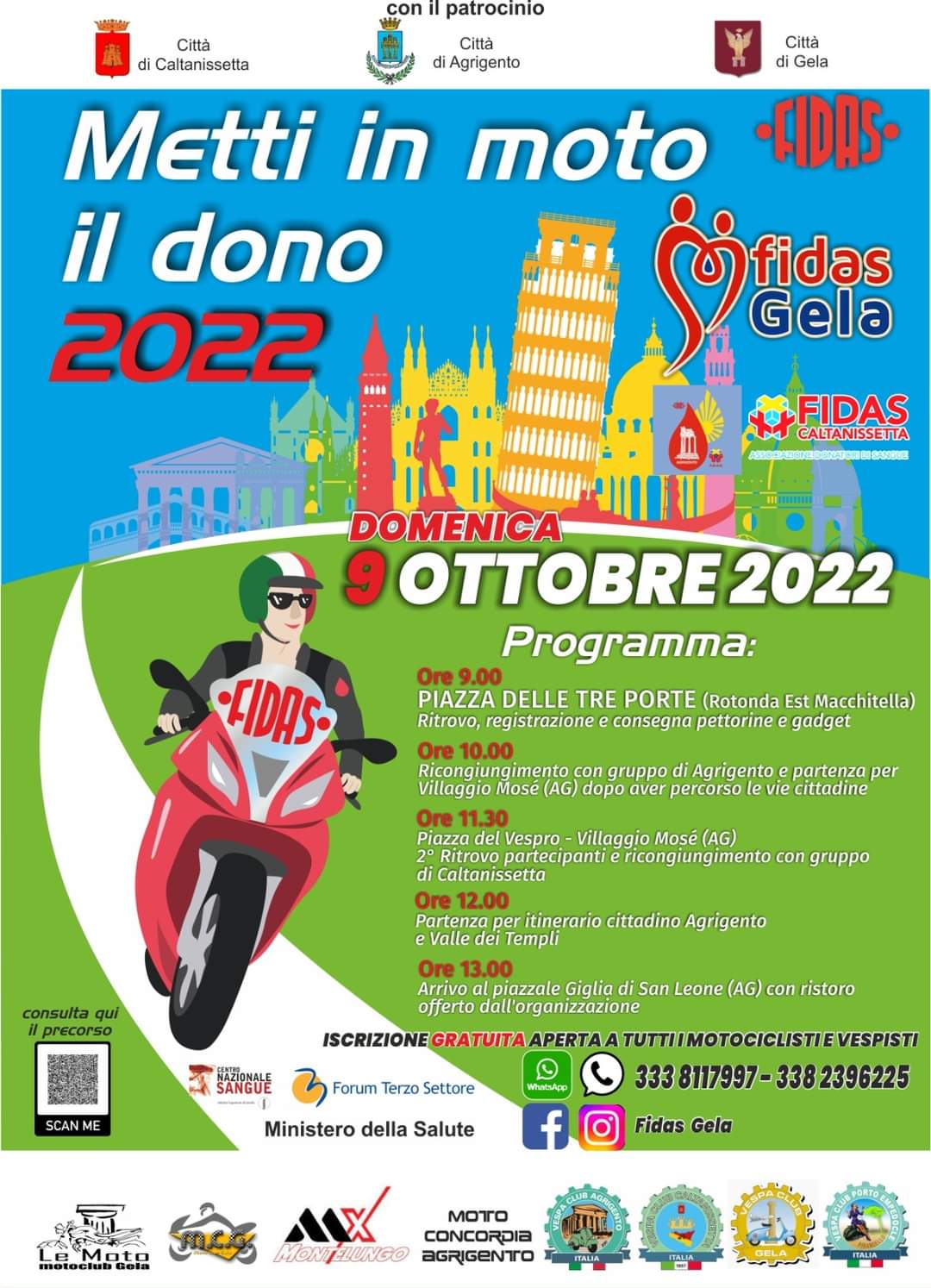 Seconda edizione dell'evento "Metti in moto il dono" domenica 9 ottobre a Gela. Un nuovo appuntamento organizzato dalla Fidas che si inserisce all’interno di un calendario di incontri che ha visto protagonisti i moto-club di tutta la Penisola: oltre al Molise anche Abruzzo, Friuli Venezia Giulia, Lazio, Liguria, Piemonte, Puglia, Toscana, Valle d’Aosta e Veneto hanno fatto da sfondo alla campagna di sensibilizzazione alla donazione del sangue.
