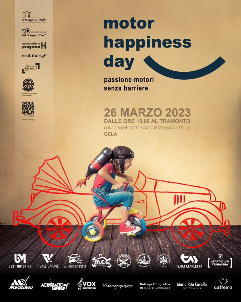 Lo scopo del "Motor happiness day", caratterizzato dallo slogan “Passione motori senza barriere”, è quello di avvicinare i cittadini alle attività di associazioni che si occupano della cura e dell'assistenza di bambini e ragazzi con disabilità, attraverso attività ludiche e ricreative che hanno come elemento unificante la passione per i motori.