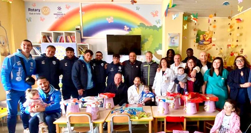 Anche la squadra biancazzurra di Gela ha visitato l'ospedale.