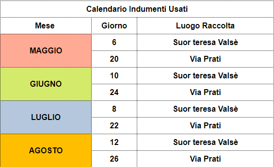 Nuovo calendario per la raccolta degli indumenti usati