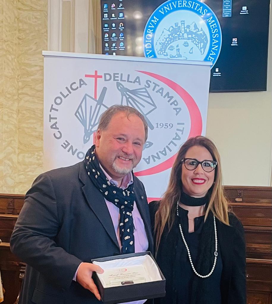 A consegnare il Premio, promosso e organizzato dalla sezione provinciale di Messina “Carmelo Garofalo”, a margine di un seminario di formazione organizzato dall’Ucsi Sicilia e promosso dall’Ordine dei Giornalisti di Sicilia, su Guerra e Disinformazione, presso l’Aula Magna del Rettorato dell’Ateneo Peloritano (presenti oltre 120 giornalisti), la Presidente della sezione di Messina “Carmelo Garofalo” dell’UCSI (Unione Cattolica della Stampa Italiana), Laura Simoncini. Presenti il Segretario Nazionale, Salvatore Di Salvo (tesoriere dell’Ordine dei Giornalisti di Sicilia) e il Presidente Regionale UCSI, Domenico Interdonato.