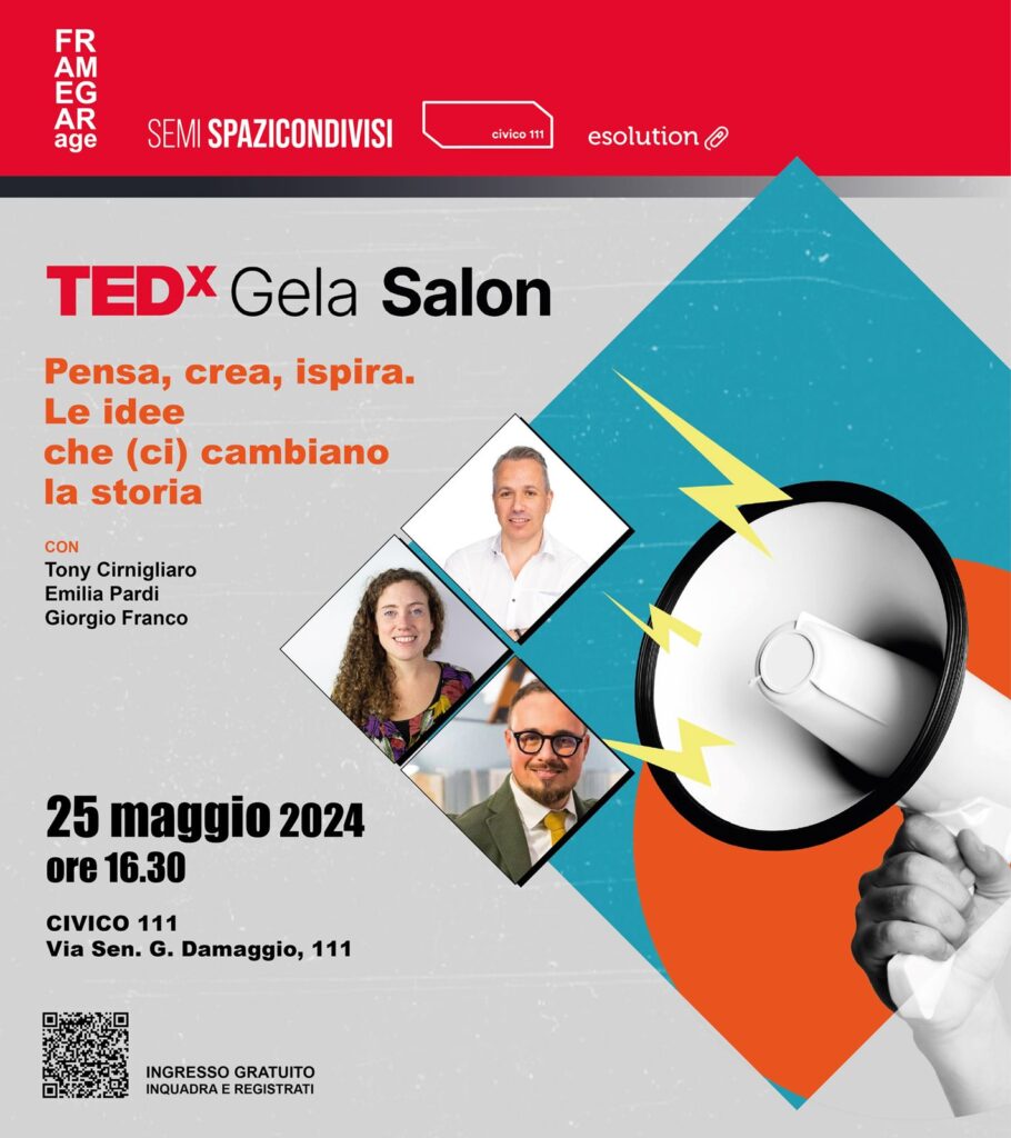 Sabato 25 maggio al Civico 111 il primo TEDx Gela Salon: “Pensa, crea, ispira”