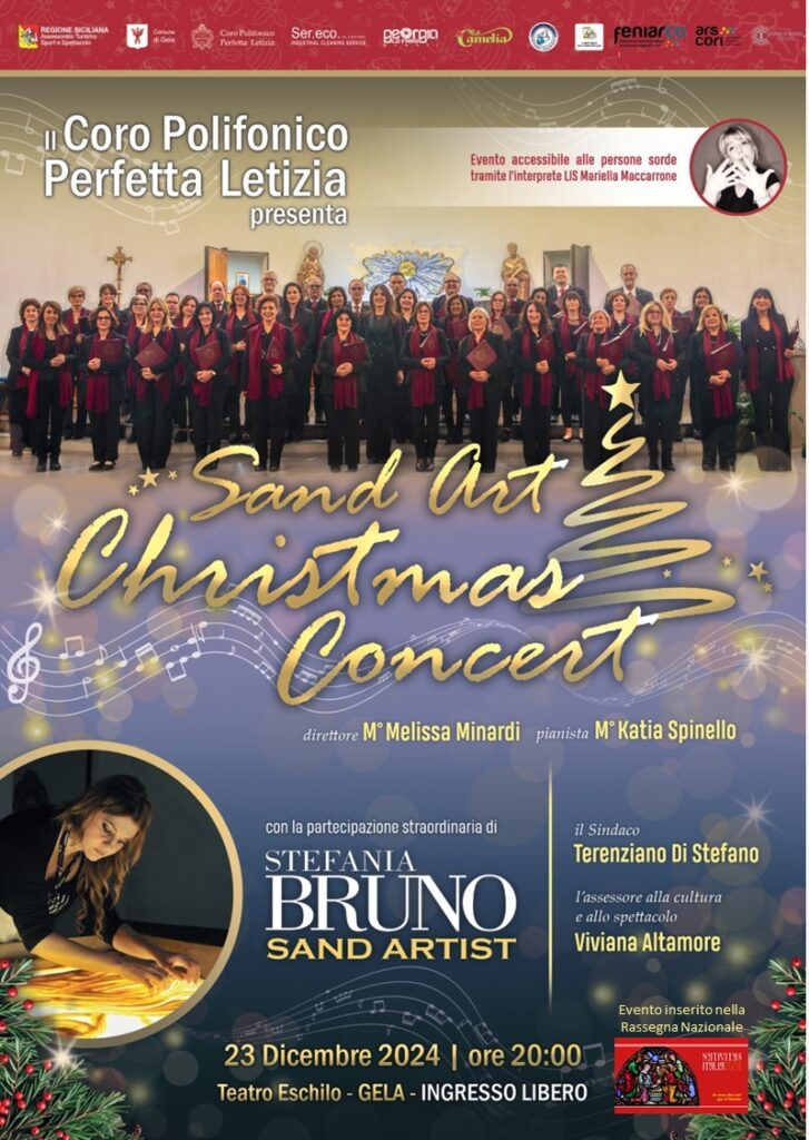 Sarà il concerto dell'inclusione, il 'Sand Art Christmas Concert', con l’interpretariato nella Lingua dei Segni Italiana. È l’evento organizzato presso il Teatro Eschilo di Gela dal Coro Perfetta Letizia, il 23 dicembre start ore 20:00, perchè “farà vedere le parole”, permettendo alla musica di arrivare anche ai sordi. Il coro diretto dal M° Melissa Minardi, al pianoforte il M° Katia Spinello sarà il precursore dell'innovazione.