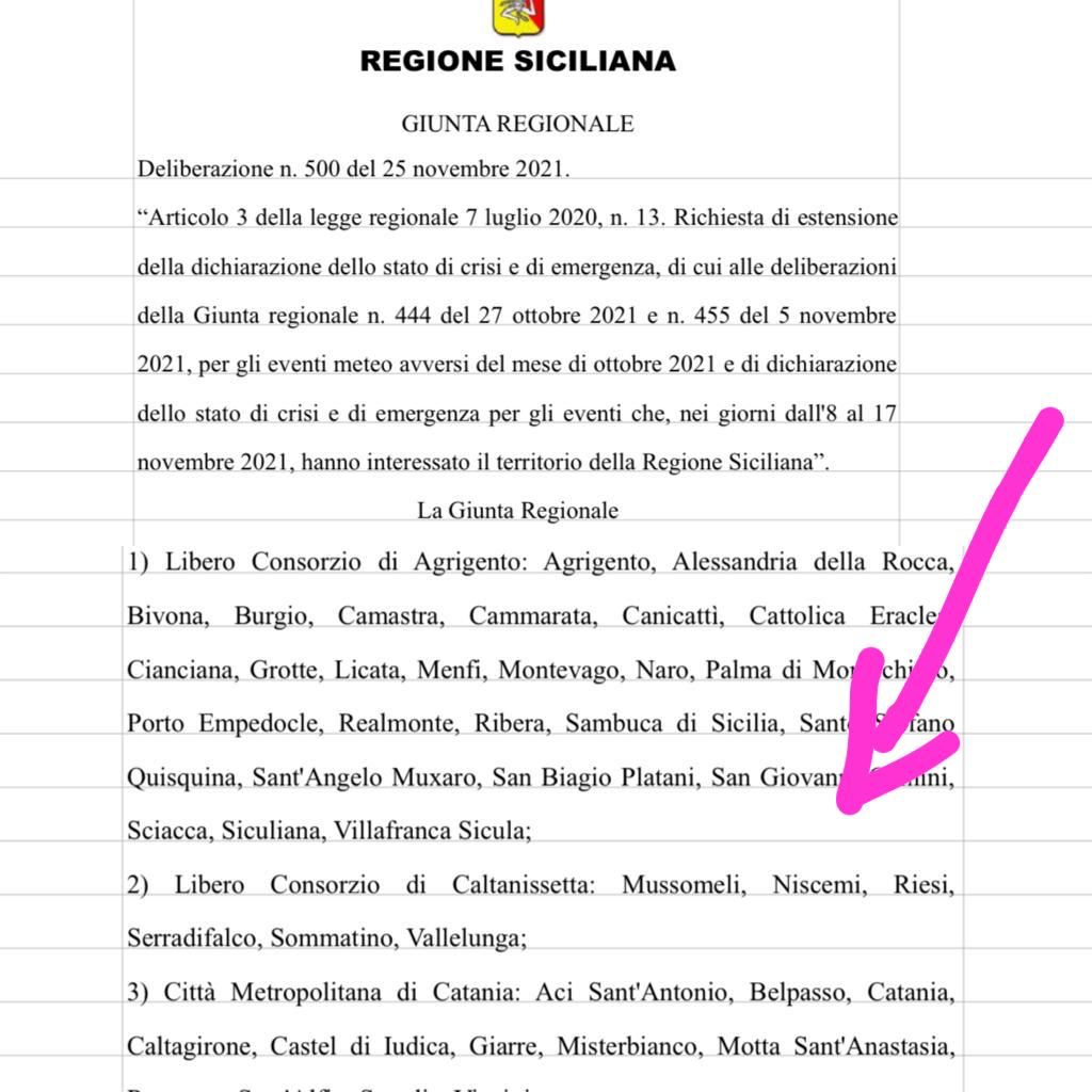 Niscemi - C' è anche Niscemi nell'elenco pubblicato dalla Regione siciliana per l'accesso ai fondi destinati allo Stato di calamità naturale ed in particolare per gli eventi che hanno flagellato i comuni siciliani nel periodo compreso fra l'8 ed il 27 dicembre. Per la provincia di Caltanissetta nel decreto della giunta regionale ci sono Mussomeli, Niscemi, Riesi, Sommatino, Vallelunga, Serradifalco. Nel decreto della Giunta regionale non c'è Gela. Adesso si attendono le giustificazioni del Comune di Gela.