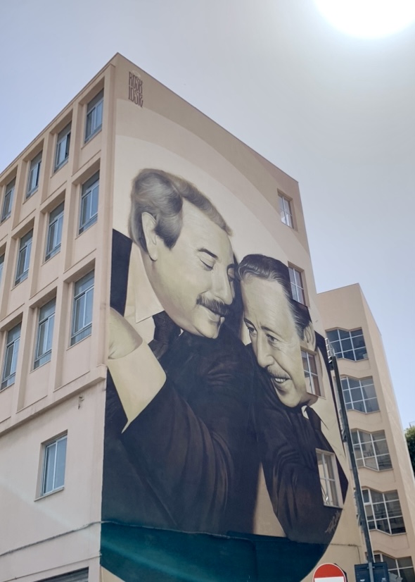 All’istituto comprensivo “Don Bosco”, più precisamente al plesso intitolato a Giovanni Falcone e Paolo Borsellino che si trova ad Albani Roccella, c’è un bellissimo murales dedicato ai due giudici. È un dipinto che richiama alla memoria la celebre opera dell’istituto nautico “Gioeni Trabia” sul lungomare della Cala, a Palermo. D’altronde le scuole sono da sempre i luoghi in cui si celebra, si condivide, si vive il ricordo dei martiri caduti nella lotta alla mafia e soprattutto si vivono le lezioni che ci hanno lasciato.